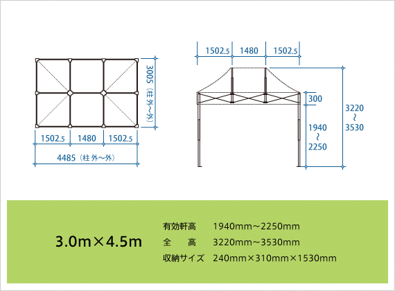 かんたんてんと3(メッシュタイプ) 3.0m×4.5m アルミ