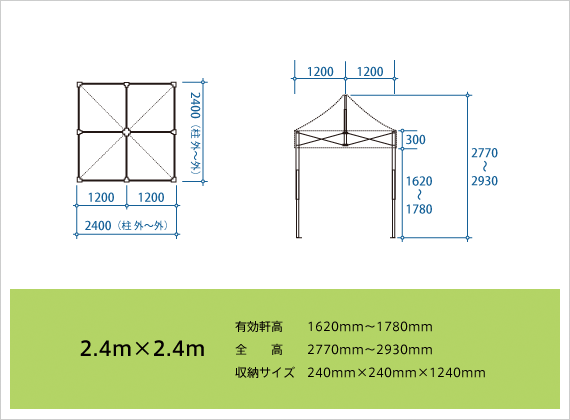 かんたんてんと3(メッシュタイプ) 2.4m×2.4m スチール&アルミ複合