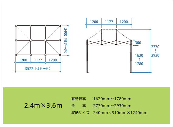 かんたんてんと3(メッシュタイプ) 2.4m×3.6m スチール&アルミ複合