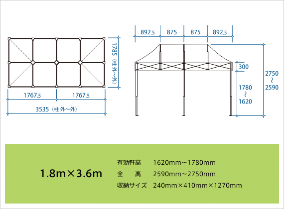 かんたんてんと3(オールアルミ)・標準色(1.8m×3.6m)